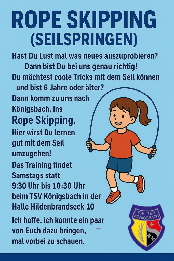 Du hast Lust, etwas Neues auszuprobieren? Dann komm zum Rope Skipping beim TSV Königsbach!